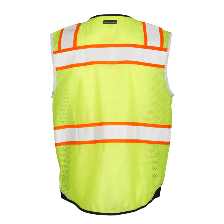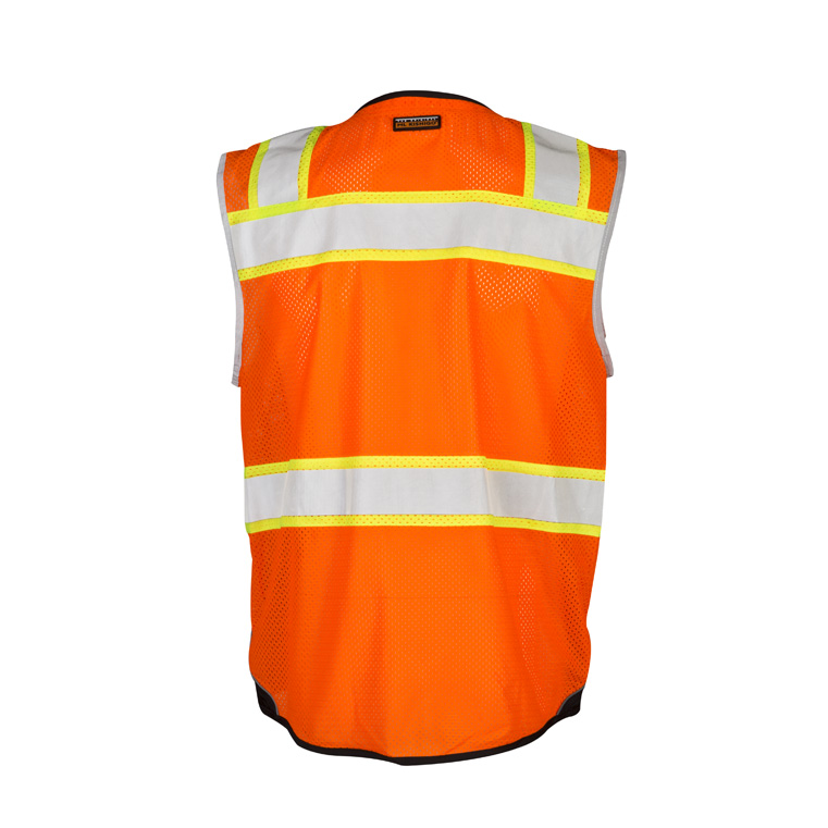 100% polyester mesh with heavy duty black bottom and trim to keep vest appearance clean & professional.