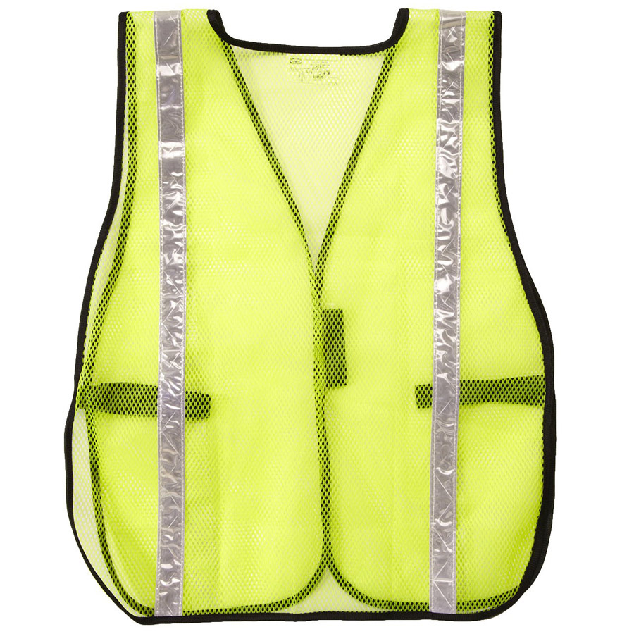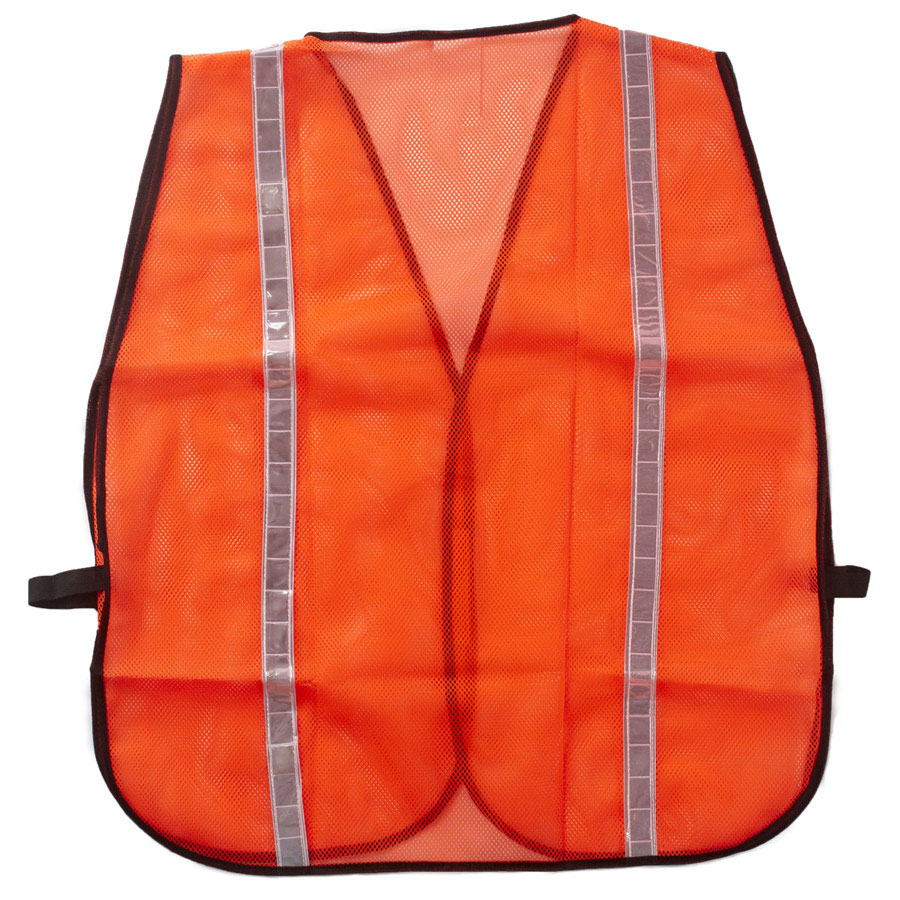 The non-ANSI yellow and orange mesh vests offer day and night visibility at a very low price. These one-size-fits-most vests are generously sized and designed with side elastic straps