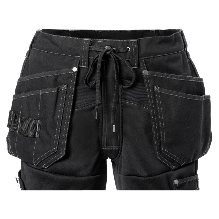 2 loose-hanging CORDURA® reinforced front pockets, 1 with 3 smaller pockets and tool loop and 1 with extra pocket