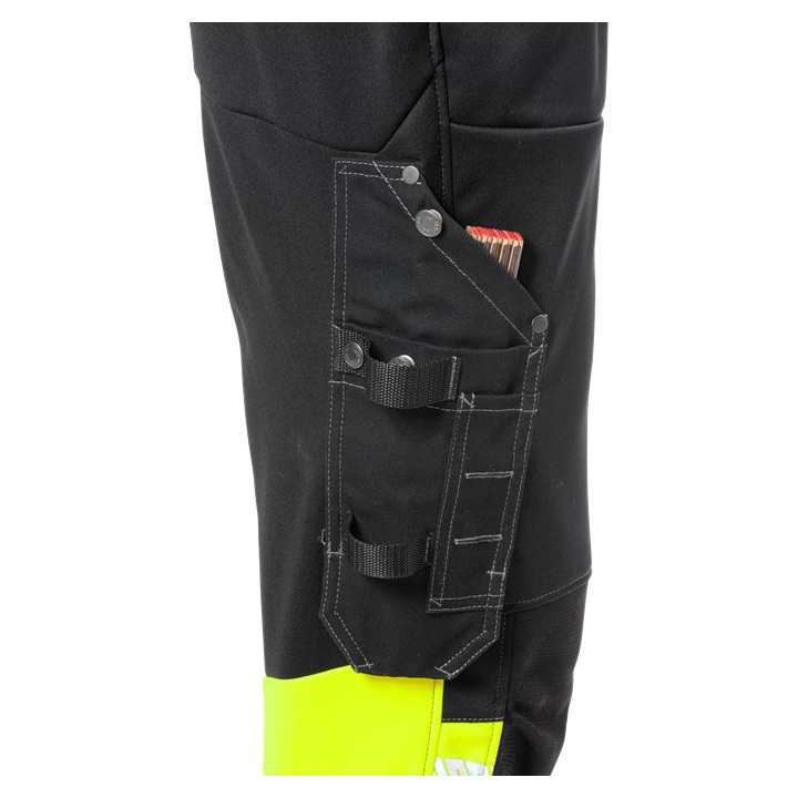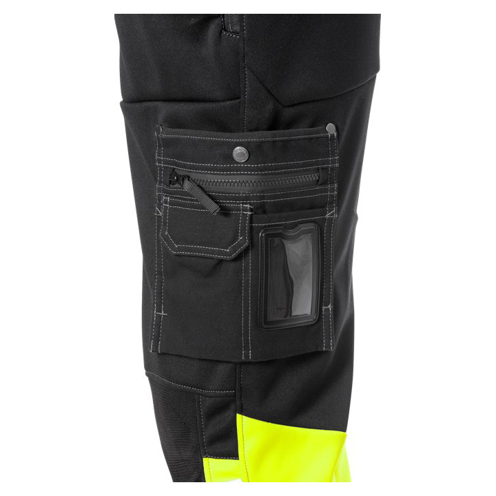 High visibility jogger trousers in a soft and durable material. Fully equipped craftsman trousers with many features and excellent soft comfort. Knee pockets in hardwearing stretch CORDURA®. Includes a water-repellent leg pocket perfect for mobile phone. Unisex model which fits both men and women.