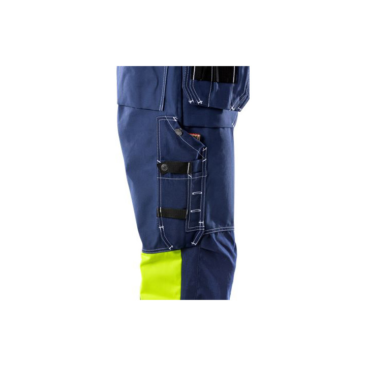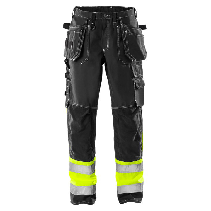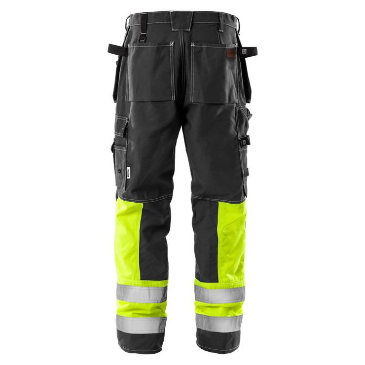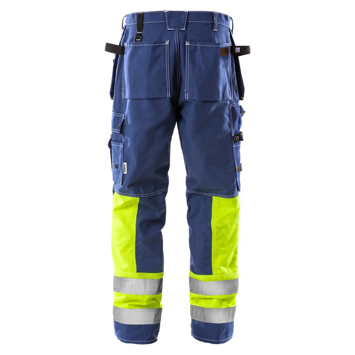 Fully eqipped high vis craftsman trousers in hard wearing 100% cotton material well suited for the majority of building sites.