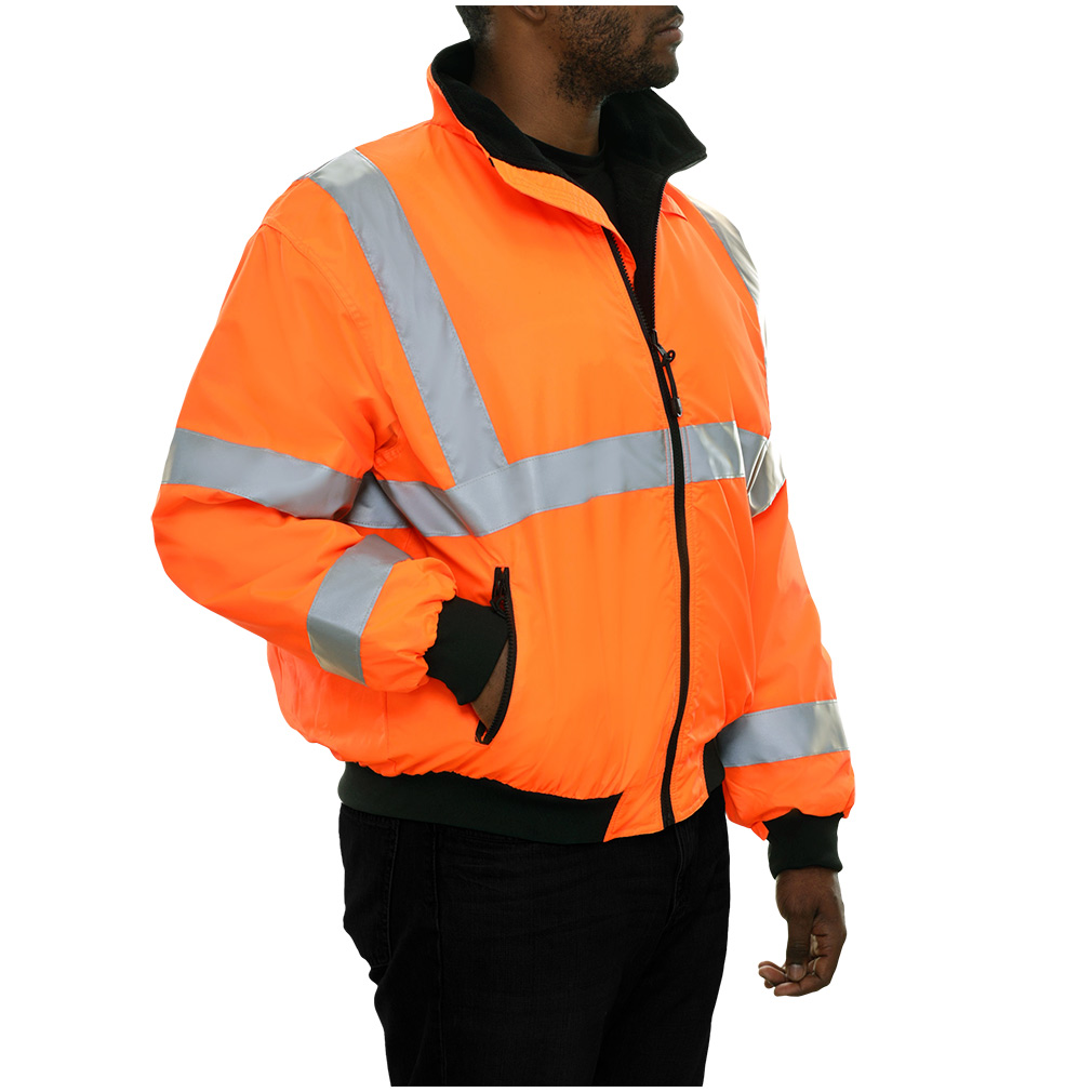 This Hi Vis Safety Jacket is an ANSI Class 3 compliant water resistant 3 Season Jacket. It is made with a tough woven polyester shell which is soft and supple. The polar fleece lining (330 grams) with full interliner and zip through collar will keep you warm on colder days. Our High Visibility Jackets feature 3M™ Scotchlite™ Reflective Material. It can be zipped into our High Visibility Parkas as part of our Systems Gear.