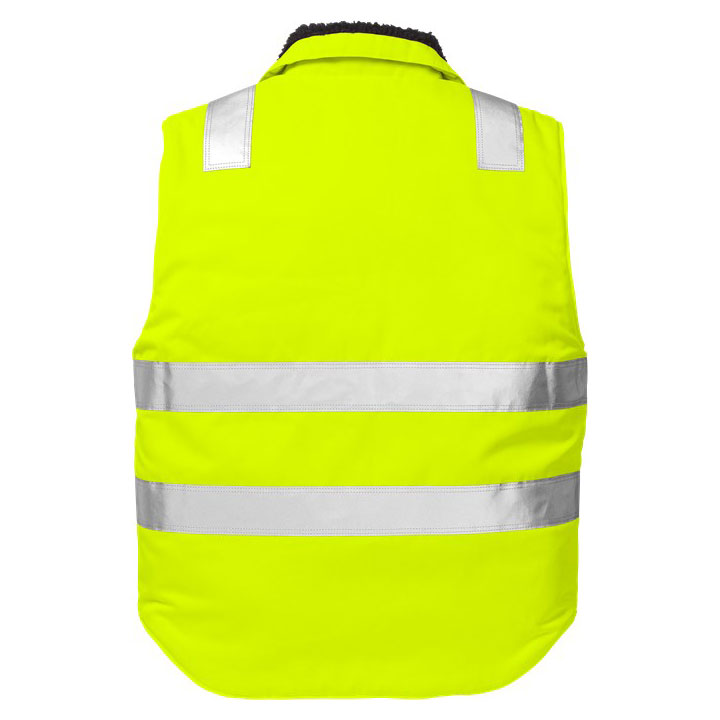 Durable high visibility waistcoat in dirt, oil and water repellent material with fibre fur lining. A great bodywarmer during cold days.