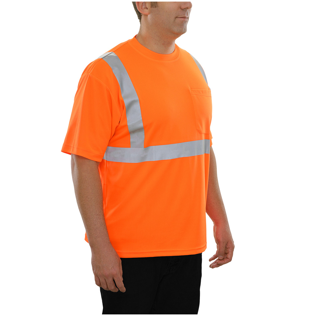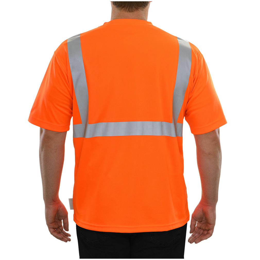 This Hi Vis Safety Shirt is ANSI Class 2 Compliant. Made with lightweight 4.1oz Birdseye Knit Polyester, it feels butter soft on the inside, yet is work-wear durable. The performance fabric wicks away moisture 3x faster than cotton and minimizes odor. Our High Visibility Shirt is available in Tall sizes L-6X. In addition, this shirt features 3M™ Scotchlite™ Reflective Material.