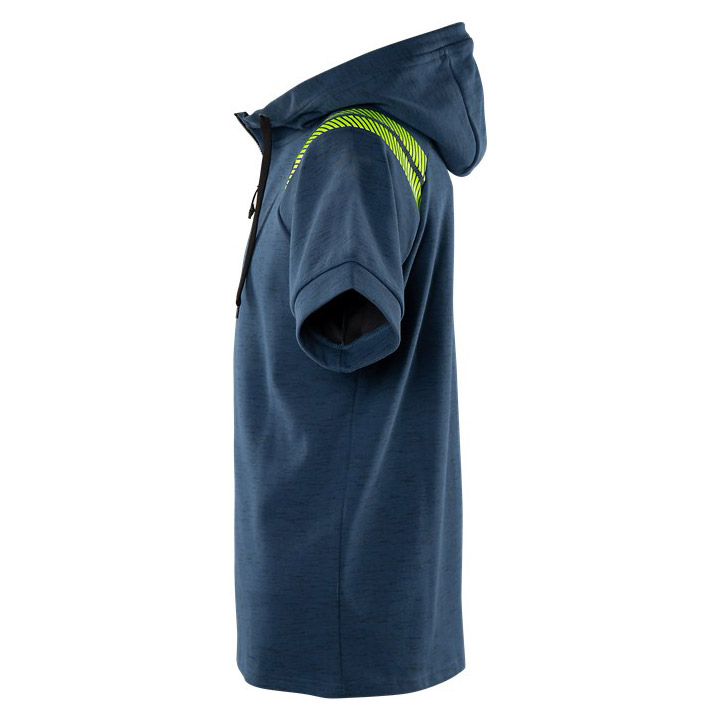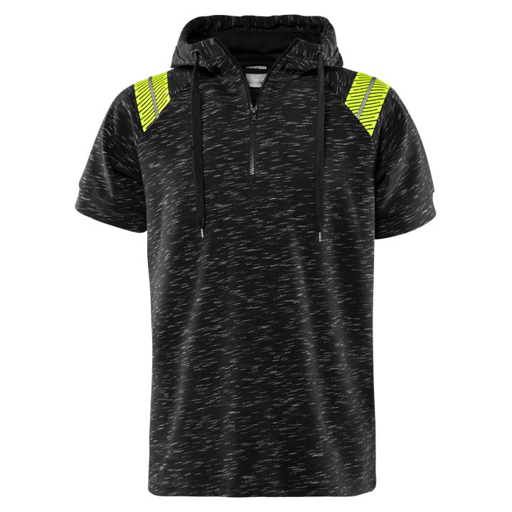 Short-sleeved hooded sweatshirt for the conscious worker who is looking for something special. Made of a comfortable melange fabric with reflective details for enhanced visibility. Can be combined with a long-sleeved T-shirt.