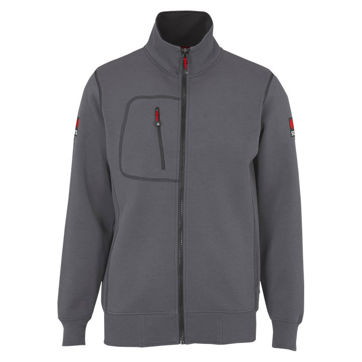 Luxurious sweatshirt jacket in soft double face fabric with front pockets.