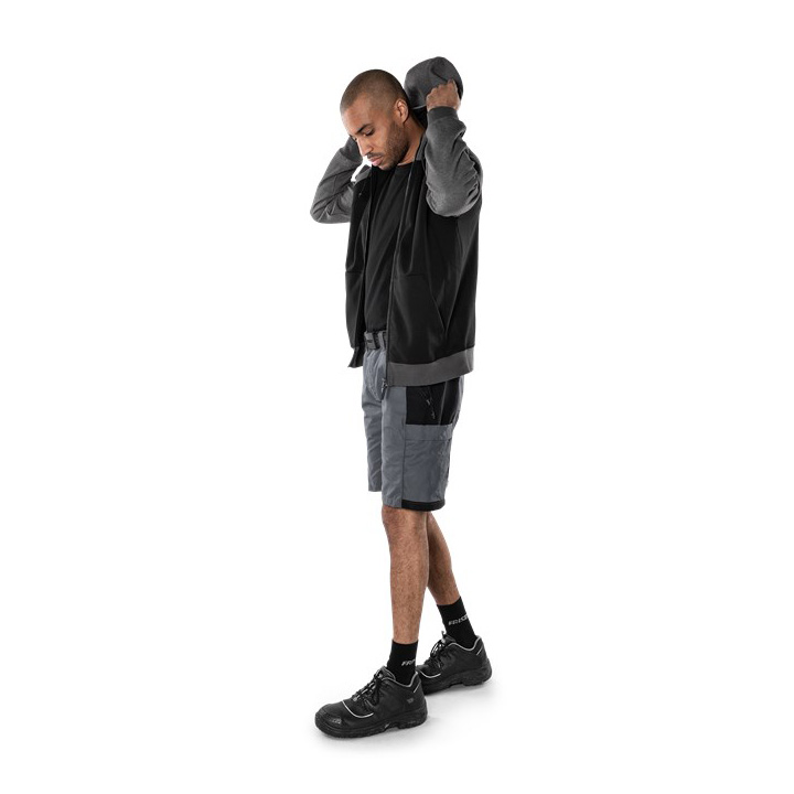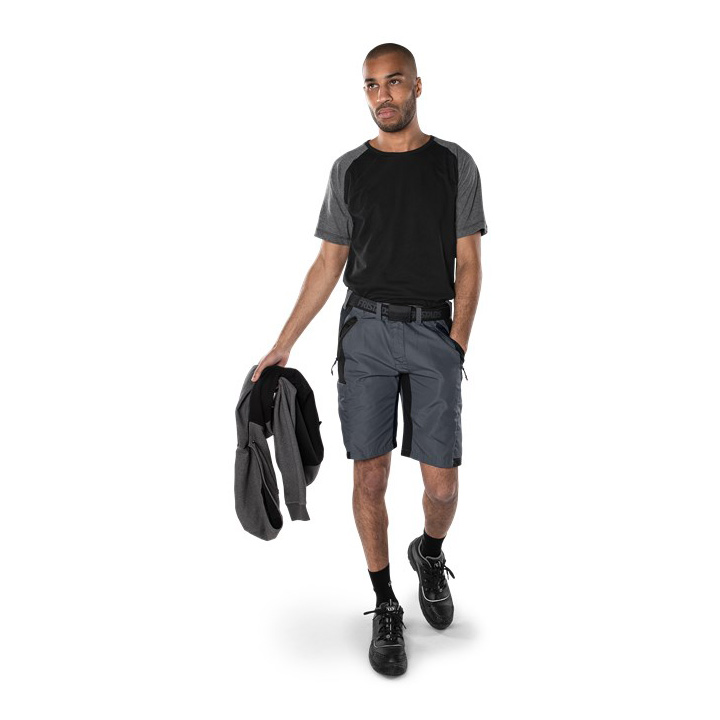 Lightweight workwear shorts with 4-way stretch panels. Made of water-repellent durable ripstop material with stretch waist and functional pockets.