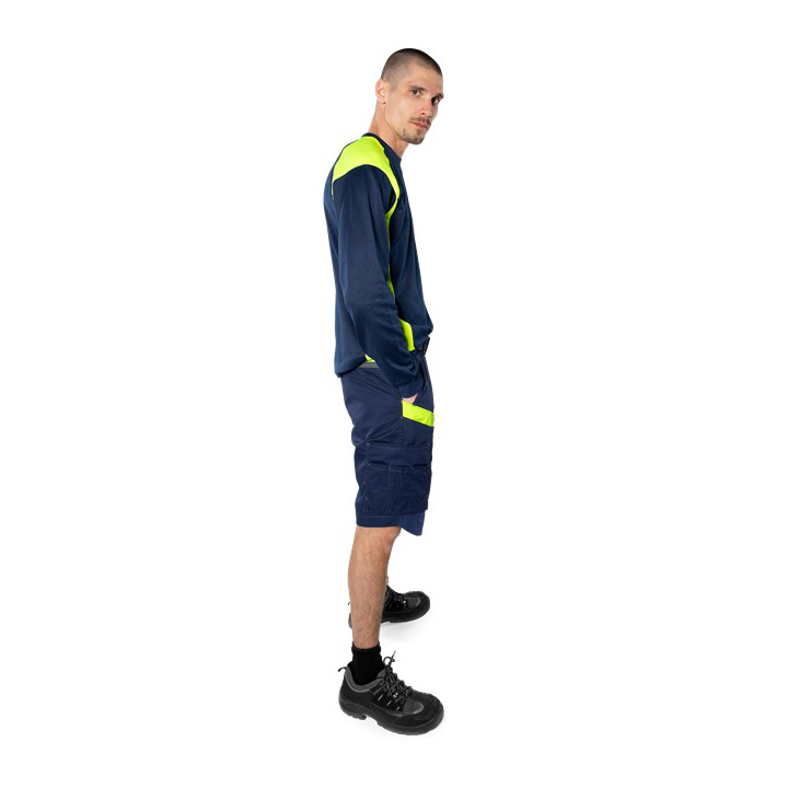 Shorts in contemporary design for workers within the service, industry or building sectors. Made of a lightweight and durable material with mechanical stretch, which gives a comfortable freedom of movement. Approved for industrial laundry.