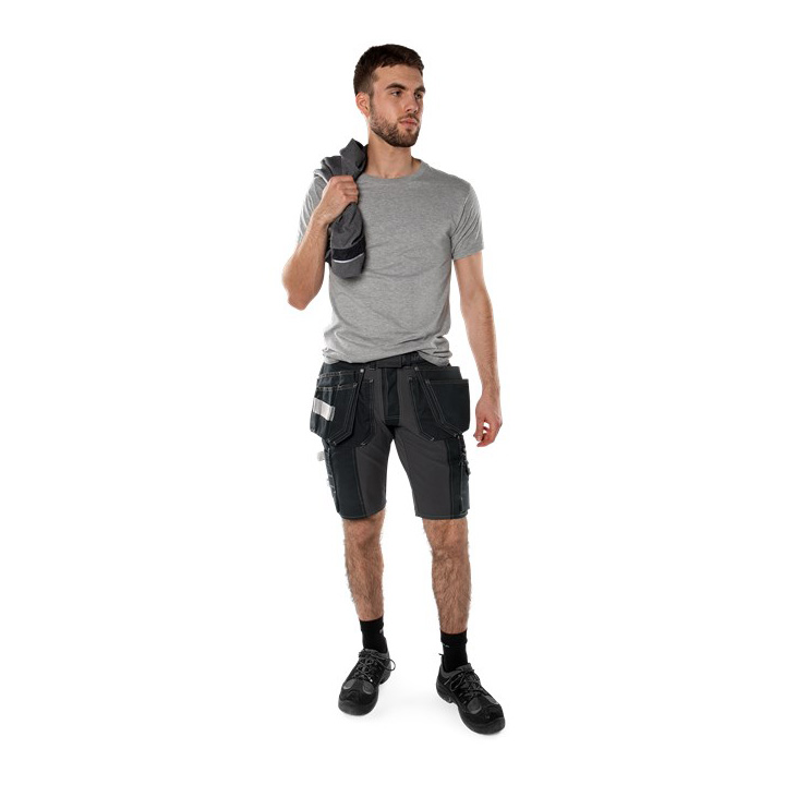 Advanced craftsman shorts with large panels of 4-way stretch material to optimize mobility. Highly comfortable and durable workwear shorts with functional pockets.