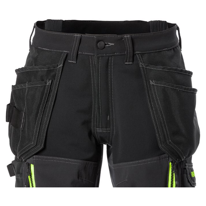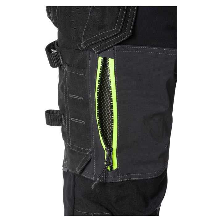 Advanced craftsman trousers made of selected 4-way stretch materials for ultimate comfort and freedom of movement. Thigh panels and back part of 4-way ripstop stretch material for high durability. Leg pockets with ventilating mesh at openings, can also be used to let out excess heat. Extra comfortable waist and mobile phone pocket of stretch material for easy access.