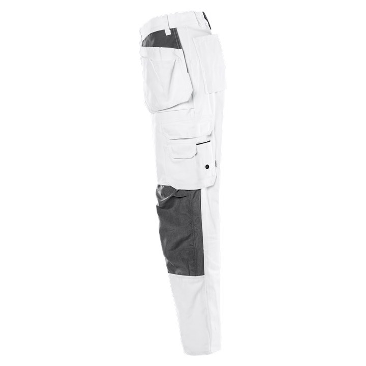 Comfortable craftsman trousers with all needed functions in hard-wearing 100% cotton material with high absorption of eg paint, making them perfect for painters.