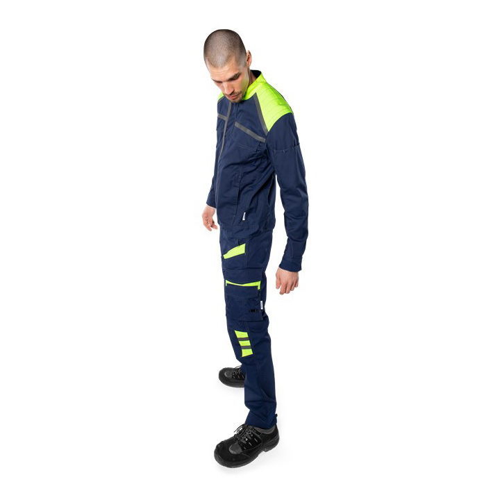 Jacket with contemporary design suitable for workers within the service, industry or building sectors. Made of a lightweight and durable material with mechanical stretch, which gives a comfortable freedom of movement. Reflective details for increased visibility. Approved for industrial laundry.