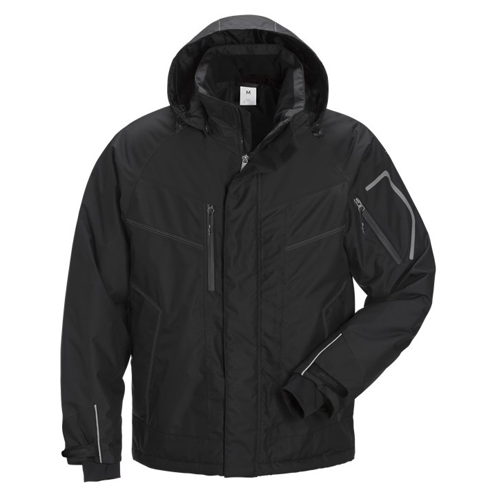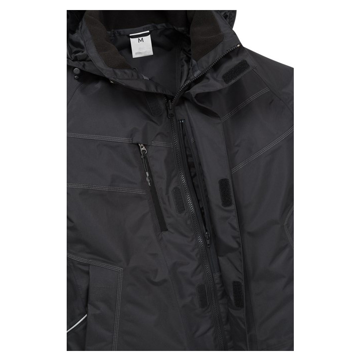 Water-, windproof and breathable jacket with soft quilted padding. Functional winter jacket with detachable hood, many practical features and ventilating panels for high comfort.
