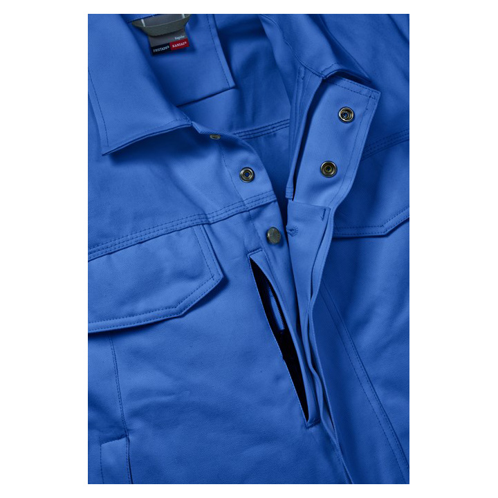 Jacket for industrial work in durable and comfortable 100% cotton material with button front. Approved for industrial laundry.