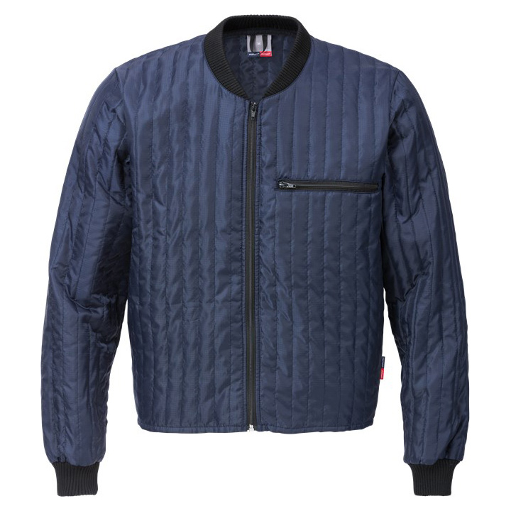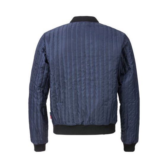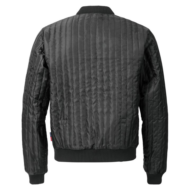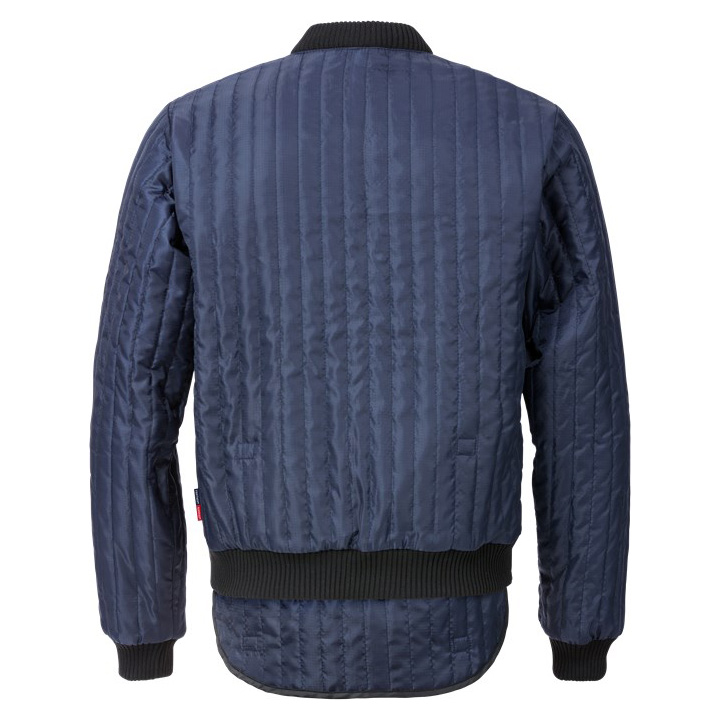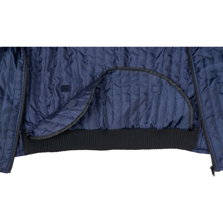 Light weight and flexible quilted jacket with an extended back that can tucked in. The silky surface of the fabric makes it easy to put on and take off, works perfect as mid layer.
